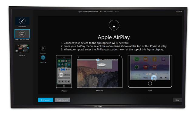 Prysm displays to go provides one-touch access to digital whiteboards, wired or wireless screen sharing, and (soon) Skype for Business and video conferencing. Prysm Go customers also have a simple upgrade path to the full Prysm digital workplace platform.